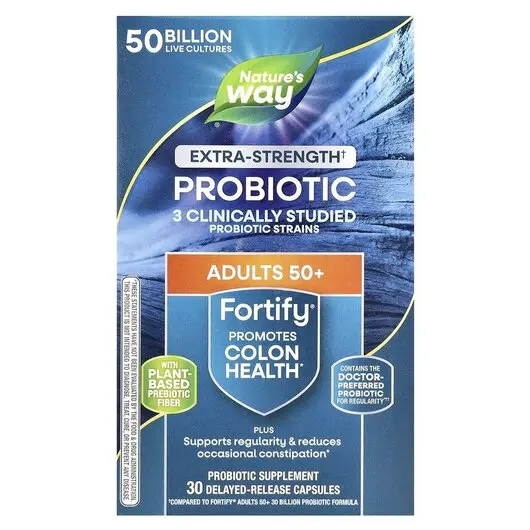 Формула Fortify Age 50+ 50 Billion CFU містить 10 пробіотичних штамів, призначених для підтримки різноманітності кишківника + пребіотики, джерело їжі для корисних бактерій.