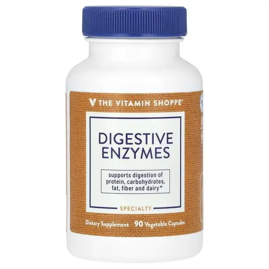 Торгова марка Vitamin Shoppe Digestive Enzymes — це капсули на рослинній основі, що містять комбінацію ферментів, що перетравлюють білки, вуглеводи, жири, лактозу та клітковину. Травні ферменти - це білки, які допомагають нашому організму розщеплювати їжу та засвоювати необхідні щоденні поживні речовини.