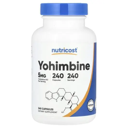 Nutricost, Yohimbine 5 mg, Йохімбе, 240 капсул