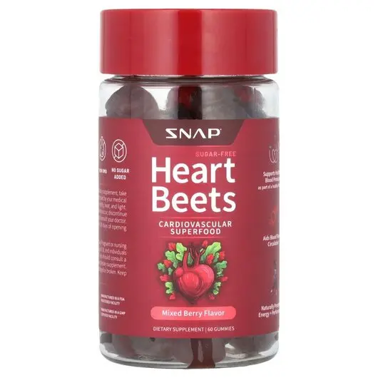 Heart Beets Gummies Sugar Free Mixed Berry, Замінник цукру, 60 таблеток