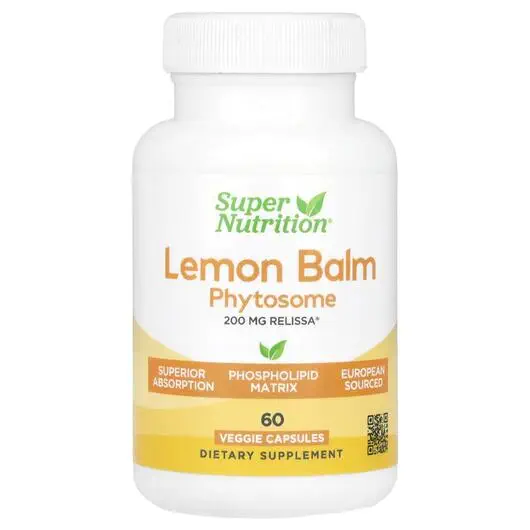 Super Nutrition Lemon Balm Phytosome містить запатентовану фосфоліпідну матрицю меліси Relissa, яка, як було показано, підтримує здоровий сон і релаксацію.