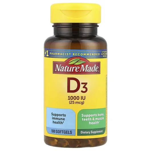 1 бренд вітамінів та добавок, рекомендований фармацевтами. Харчова добавка. Підтримує здоров'я кісток, зубів та м'язів. Підтримує імунне здоров'я. Без додавання кольору. Без штучних ароматизаторів. Використовуйте щодня, щоб підтримувати здоровий рівень вітаміну ще...