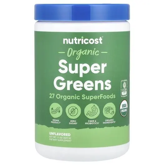 Nutricost, Organic Super Greens Unflavored, Супергрінс, 309 г
