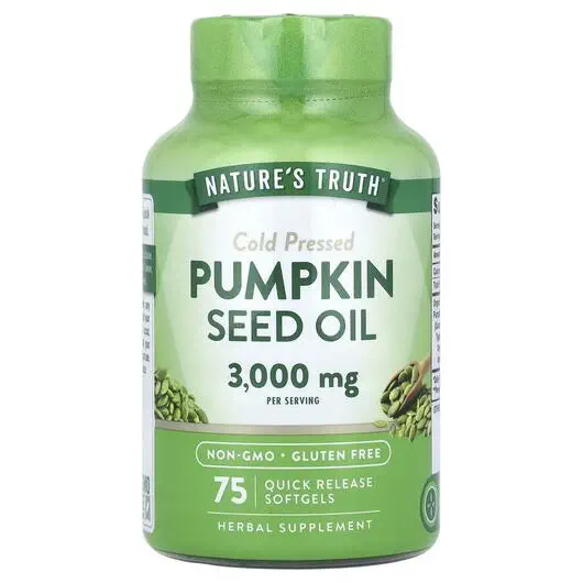 Pumpkin Seed Oil Cold Pressed 3000 mg, Гарбузова олія, 75 капсул