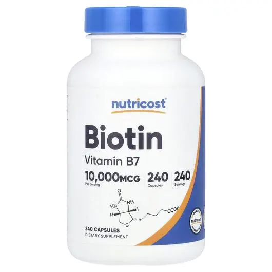 Nutricost, Biotin 10000 mcg, Вітамін B7 Біотин, 240 капсул