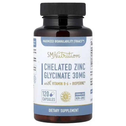Фото товару SMNutrition, Chelated Zinc Glycinate, Цинк Гліцинат, 120 капсул