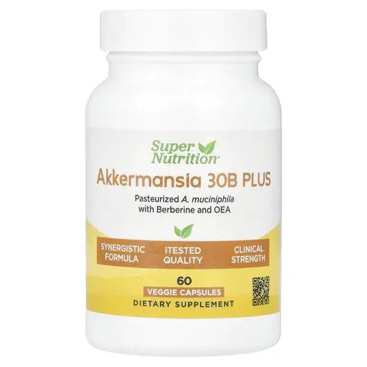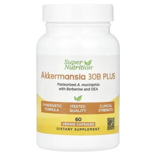 Super Nutrition Akkermansia 30B Plus це унікальна комбінація інгредієнтів (вбитих термічним впливом Akkermansia muciniphila , берберин індена фітосома, олеоїлетаноламін OEA), що підтримує здоров'я слизової оболонки шлунково-кишкового тракту, позитивно впливає на кишковий мікробіом (вміст кишкових мікробів) і сприяє секреція глюкагоноподібного пептиду-1 (GLP-1).