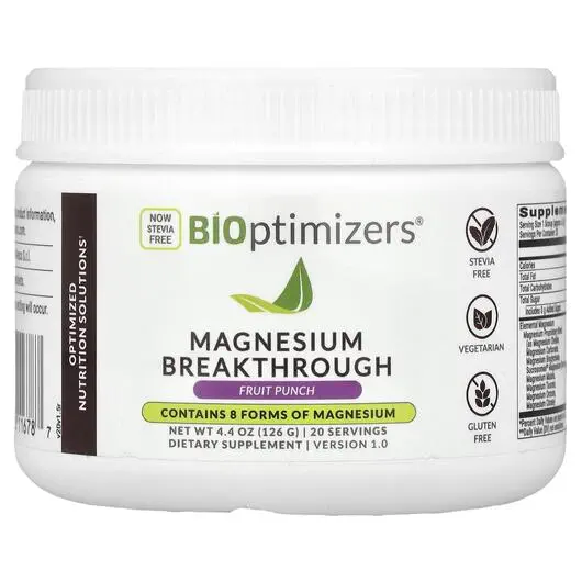 Основне фото товара BiOptimizers, Magnesium Breakthrough Fruit Punch, Магній, 126 г