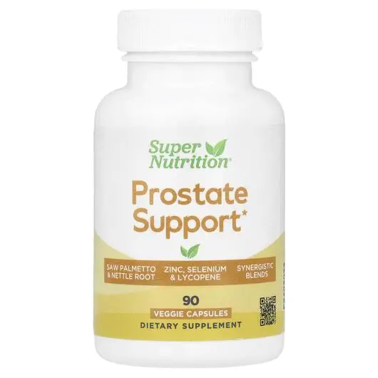 Super Nutrition Prostate Support містить складну суміш синергетичних інгредієнтів, таких як ягоди пальмової пальми, корінь кропиви, екстракти зеленого чаю та граната, фітостероли, цинк, селен і лікопін, а також синергетичні ферменти та спороутворюючий пробіотик Weizmannia coagulans (раніше Bacillus coagulans). Розроблено для підтримки здоров'я простати.