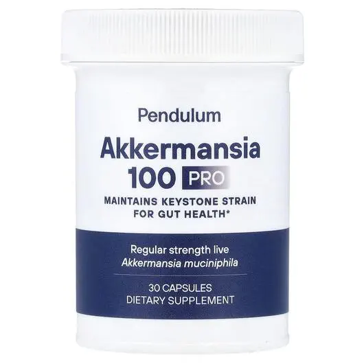 Akkermansia 100 PRO від Pendulum PRO це дієтична добавка, розроблена для підтримки здоров'я кишківника шляхом підтримки основного штаму Akkermansia muciniphila. Кожна капсула містить 100 мільйонів AFU живої аккермансії у формулі звичайної концентрації, допомагаючи підтримувати збалансований мікробіом кишківника.