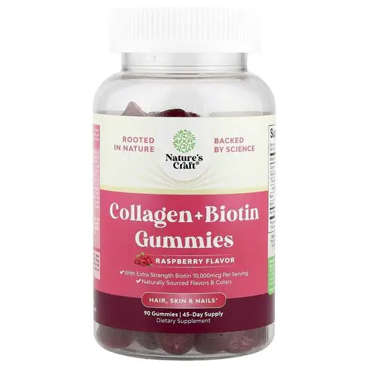 Collagen + Biotin Gummies Raspberry, Колаген, 90 таблеток
