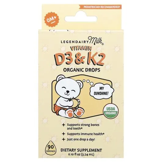 Vitamin D3 & K2 Organic Drops 0 + Months, Вітаміни D3 K2, 3.24 мл