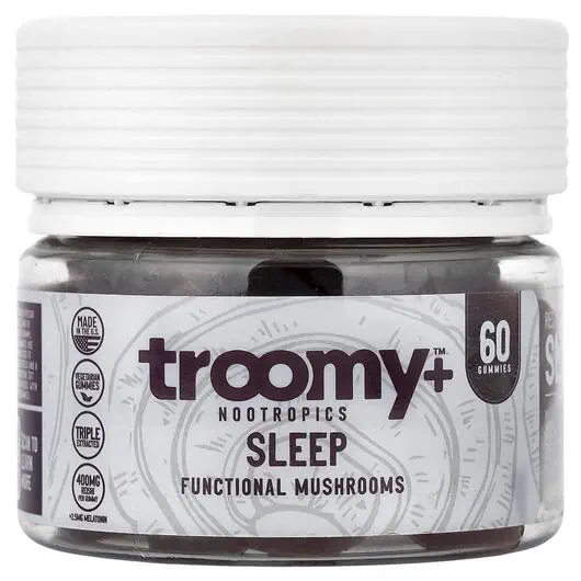 Жувальні цукерки Troomy Sleep, що містять 400 мг гриба рейші та 2,5 мг мелатоніну, спеціально розроблені для зниження стресу та підтримки здорового сну. Отримайте ці корисні речовини, необхідні вашому організму, з жувальним цукерками Troomy Sleep.