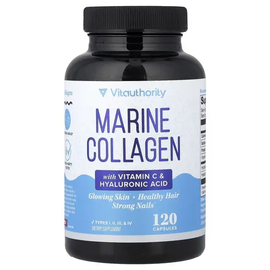 Marine Collagen with Vitamin C & Hyaluronic Acid, Колаген, 120 капсул