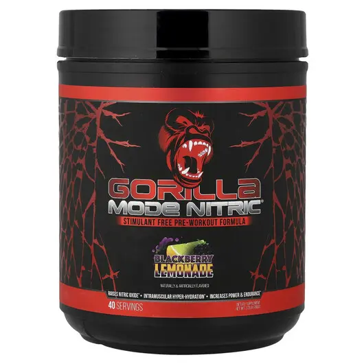 Представляємо Gorilla Mode Nitric, наш повністю готовий до тренування перед тренуванням без стимуляторів. Містить 32 478 мг прекурсорів оксиду азоту, плазмозамінників, електролітів та об'ємних речовин. Порошок Gorilla Mode Nitric розширює межі можливостей негормонального передтренувального засобу, і все це поміщається у звичайну ємність (якби було більше, нам знадобилася б ємність розміром з протеїн, щоб вмістити все це).