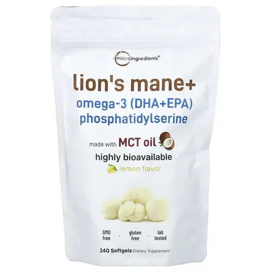 Lion's Mane + Omega-3 DHA+EPA Phosphatidylserine Lemon, ДГК, 240 капсул