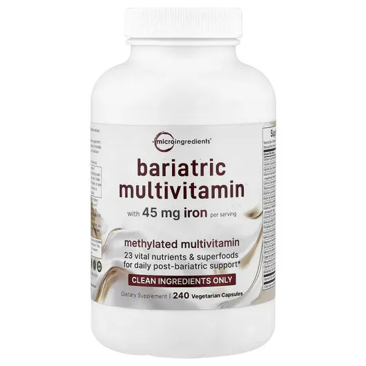 Баріатричні вітаміни включають в себе широкий спектр мікроелементів, вітамінів та мінералів, що необхідні для підтримки здоров'я після хірургічного втручання. Зазвичай вони містять: