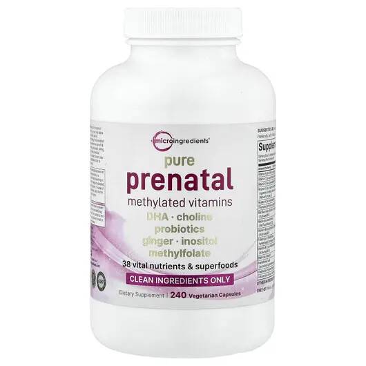 Micro Ingredients пропонує чисті пренатальні метильовані вітаміни для жінок у вегетаріанських капсулах, які містять 38 важливих поживних речовин. Вони містять високо поглиблені біоактивні форми, виготовлені з чистих активних інгредієнтів без наповнювачів. Ця комплексна формула постачає необхідні вітаміни, мінерали, омега-3 DHA, пробіотики та ботанічні компоненти для живлення матері та дитини до, під час та після вагітності.