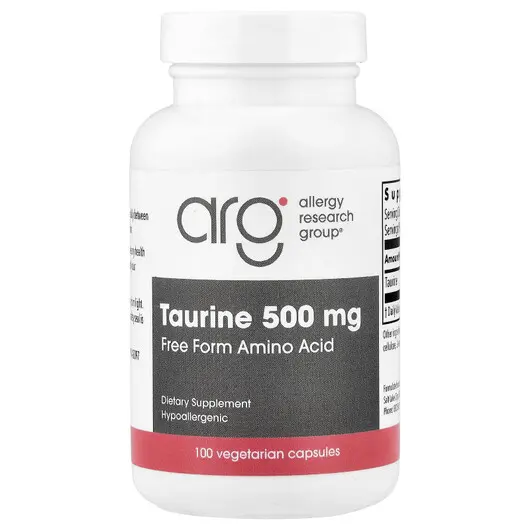 Allergy Research Group, Taurine 500 mg, L-Таурин, 100 капсул