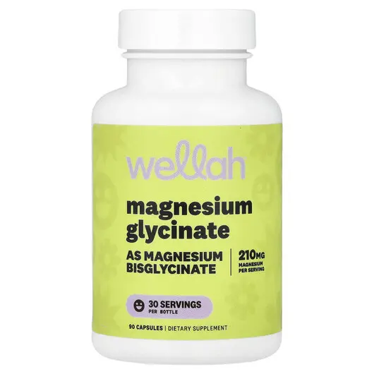 Основне фото товару Wellah, Magnesium Glycinate 210 mg, Гліцинат магнію, 90 капсул