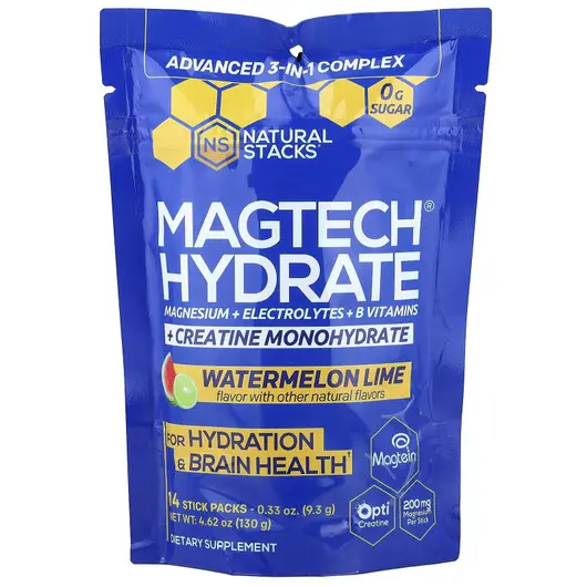 Magtech Hydrate Watermelon Lime 14 Stick Packs, Магній, 9.3 g Each