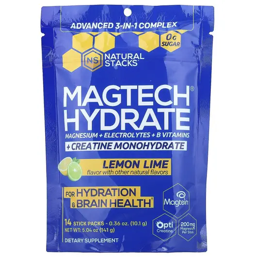 Magtech Hydrate Lemon Lime 14 Stick Packs, Магній, 10.1 g Each