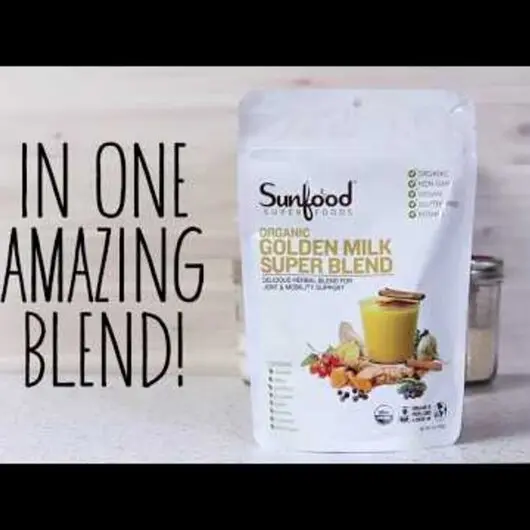Sunfood Organic Golden Milk Super Blend сертифікований як органічний, без ГМО та на 100% на рослинній основі.